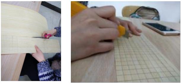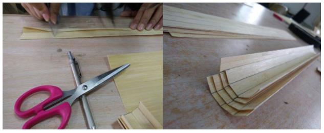 | ② 沿长度方向裁下肋条,并将肋按照最后形状折好,待用。 |