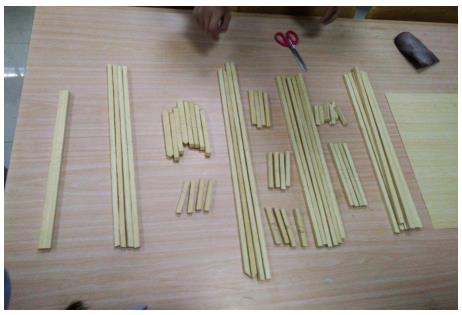 橡皮、直尺、铅笔 在竹皮上绘制杆件平面设计图 |